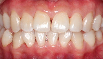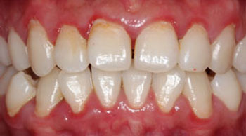 Significant gum disease with lots of plaque and bacteria above and below the gumline