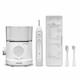 This professional model comes with 2 flossing brush heads (1 full-size, 1 compact) with brush head covers, a premium toothbrush case, a 2-minute brushing timer with 30-second pacer, global voltage, and a removable water reservoir with 60+ seconds of flossing time.