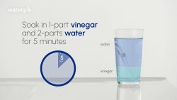 - Remove the tip from your water flosser. Soak the tip - and for countertop water flossers, the handle - in 1-part vinegar and 2 parts water for 5 minutes.