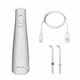 The Cordless Enhance water flosser comes with 2 flossing tips, 2 pressure settings, global voltage compatibility, and a removable water reservoir with up to 45 seconds of flossing time.